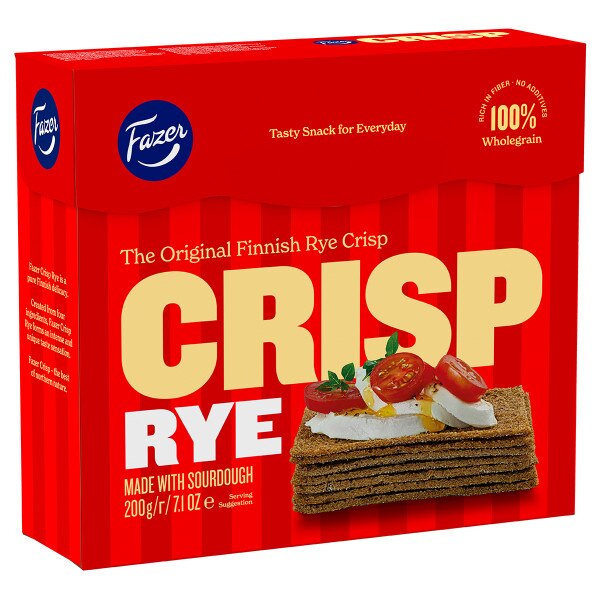 Staying true to their brand promise of “Northern Magic. Made Real,” and their product commitment of using “nature’s finest ingredients, nothing unnecessary and nothing added,” Fazer Crisp products are crafted from sourdough. They are rich in fiber, made from 100% wholegrain, and attain their satisfying crunch from hours of baking. Fazer Crisp is a tasty snack suitable for every day. Enjoy as is, with soup or salad, or paired with cheese and deli meats, tuna or egg salad, avocado and tomato, smoked salmon and cream cheese, or nut butters and fruit. Available in three varieties: Dark Rye, Rye, or Rye & Rosemary.